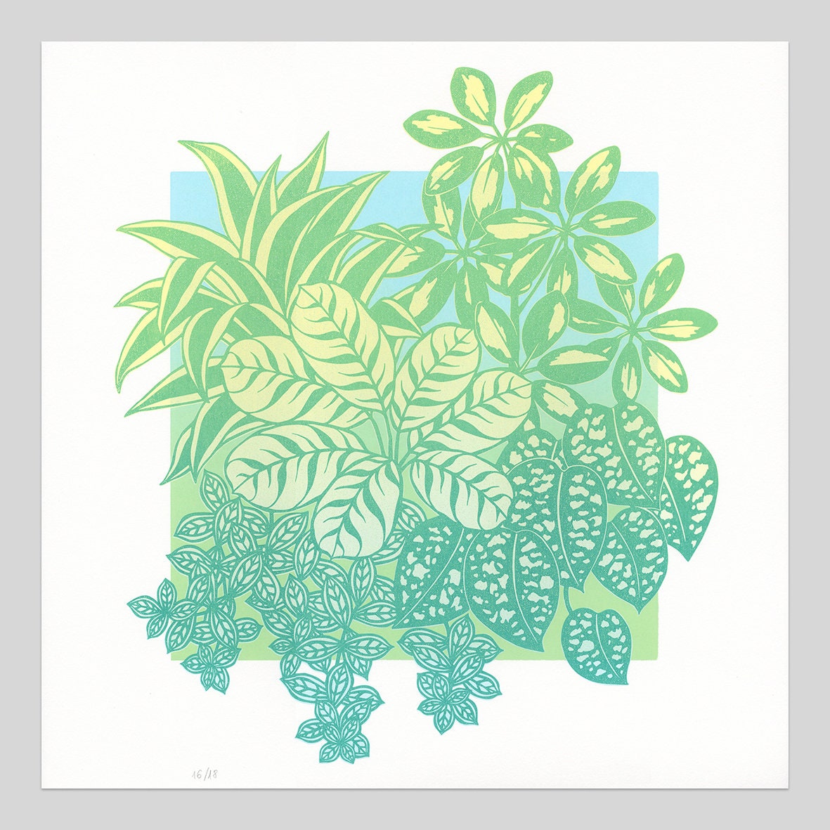 Original, limited edition botanical print handprinted by me based on my illustration of indoor plants.