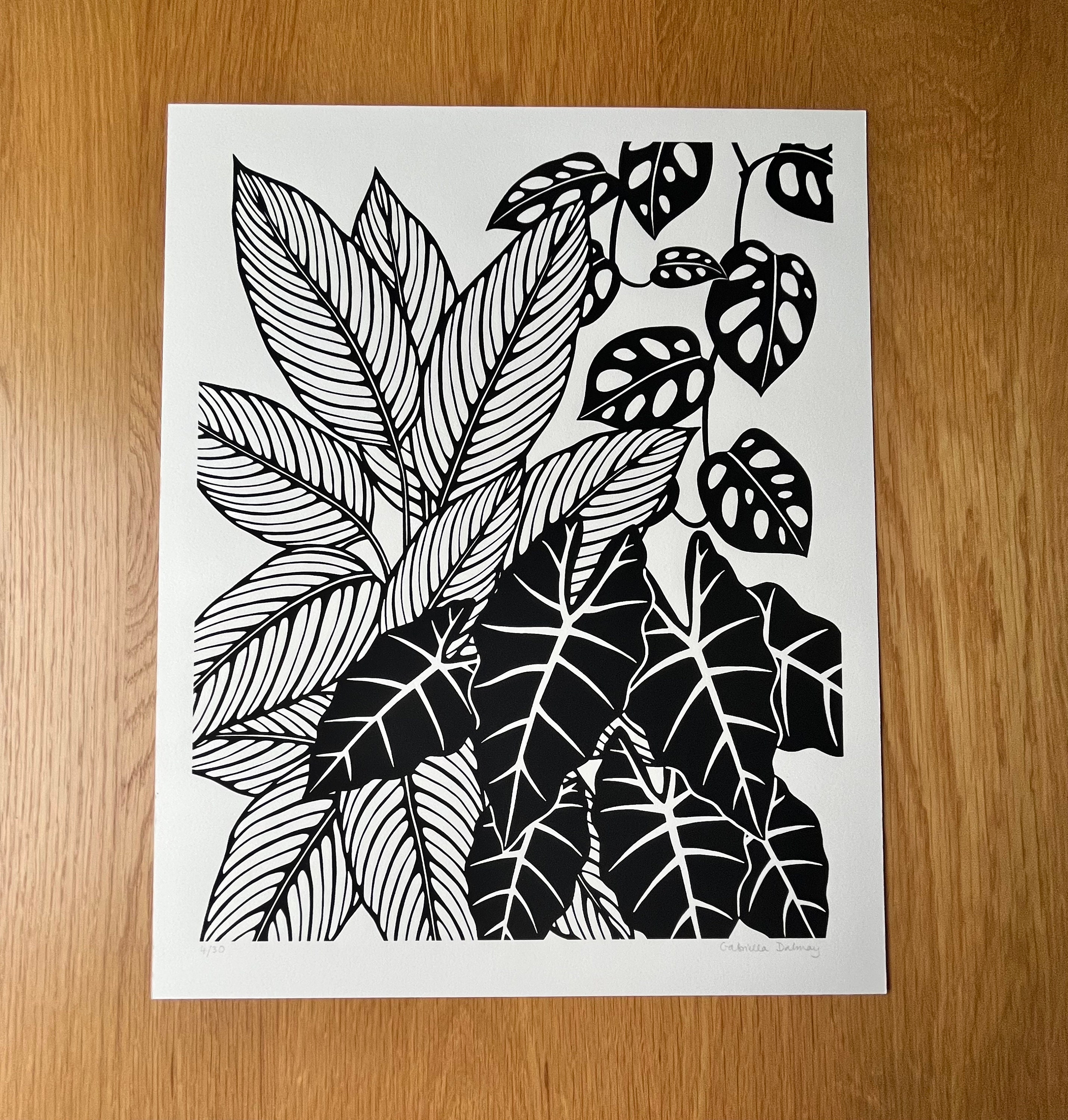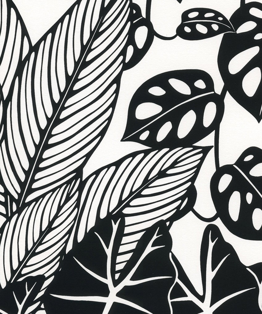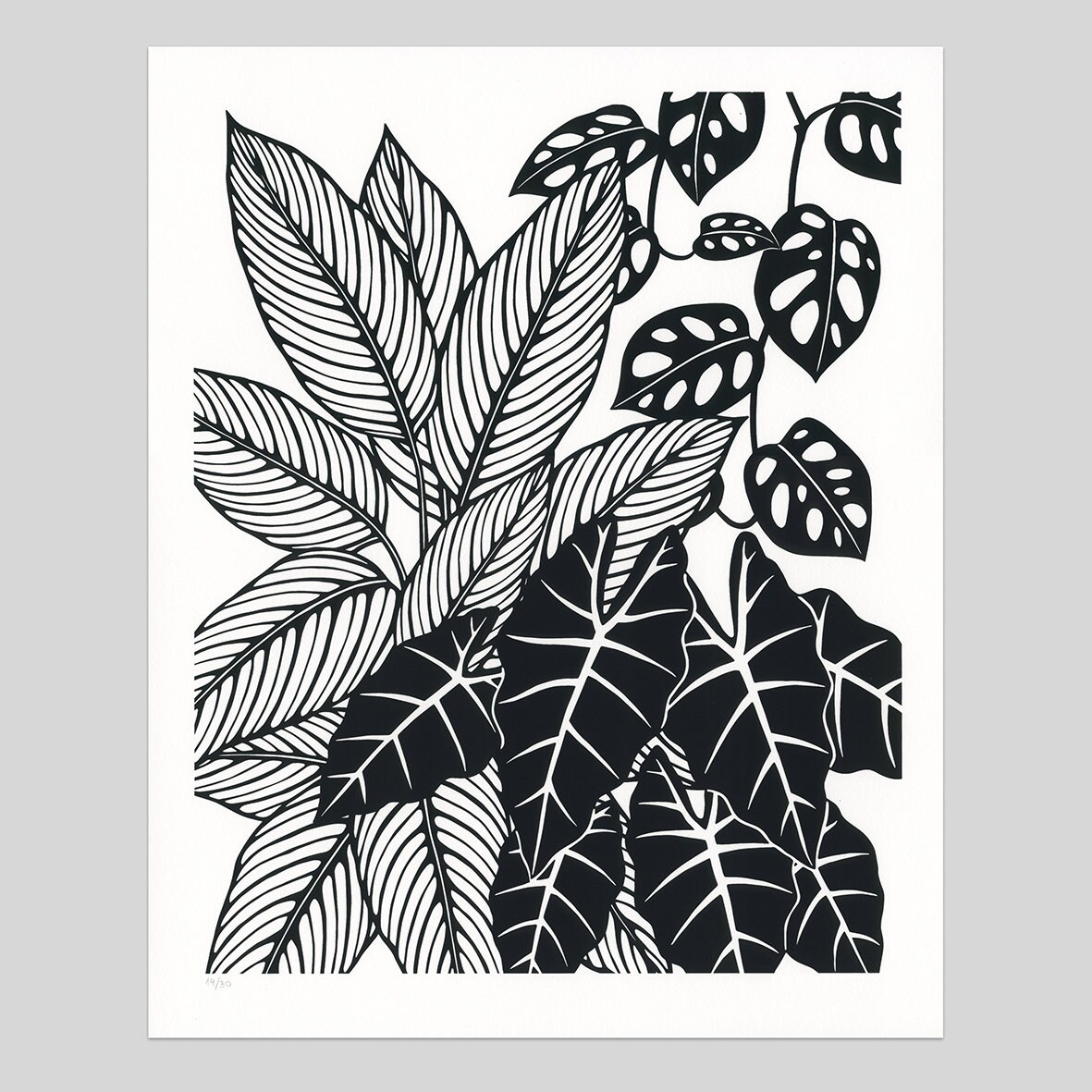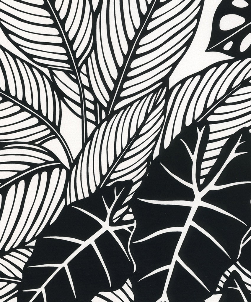 Botanical silkscreen print based on my pen and ink drawings of Alocasia and Calathea plants.