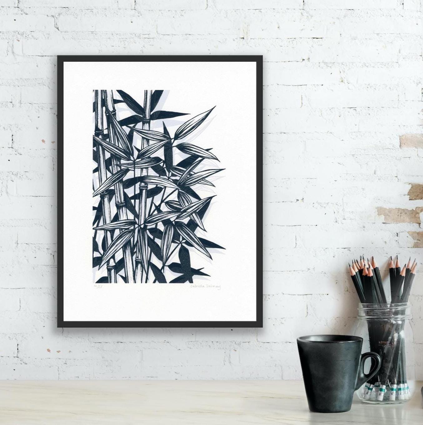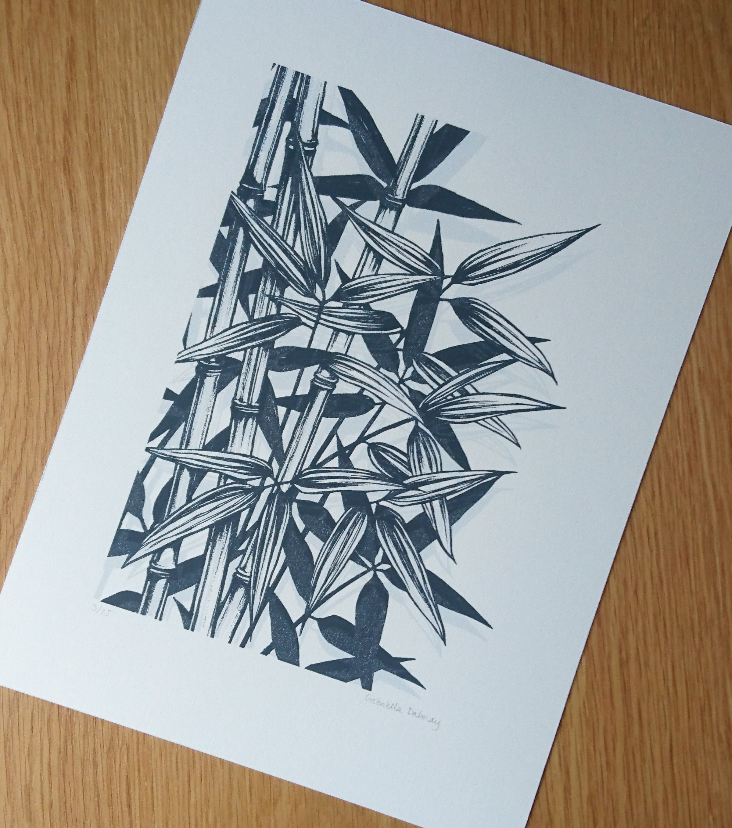 This is a two layer screen print featuring a bamboo variety with stripy leaves. Limited edition of 25, hand printed by me on heavyweight printing paper using water based ink.